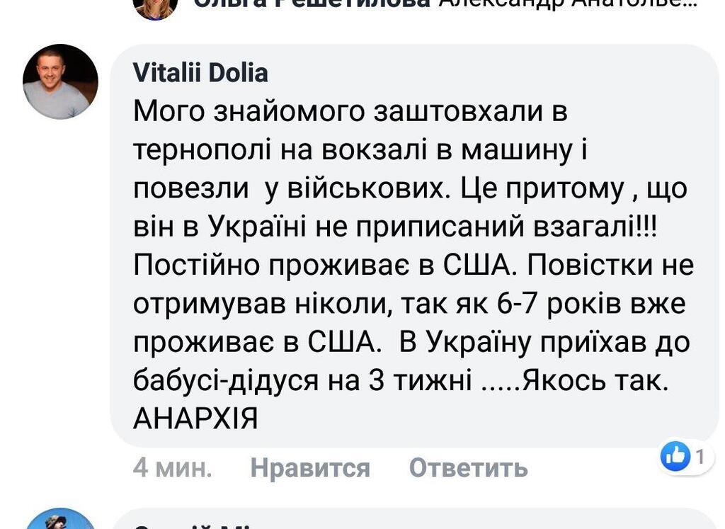 "Т.е. со всех учетов тут он снят. Постоянно проживал в Америке. Естественно, никаких повесток он получать не мог. Приехал на три недели навестить родных. Стоял на вокзале, когда к нему подошли трое в военной форме. Затолкали в машину и повезли в военкомат, там же провели медкомиссию. И отправили в Яворив Львовской области. Сначала намекали, что можно порешать вопрос за 1500 долларов, а когда отец поднял шум, то принципиально уже ничего не решали. Теперь он служит во Львове", - дополнил Виталий.