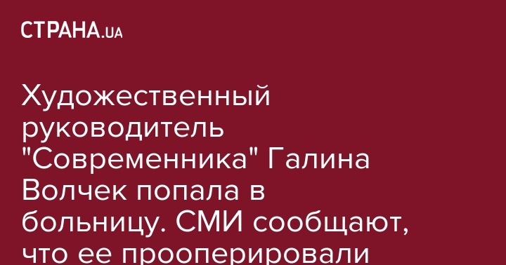 В ночь с 15 на 16 июля известная актриса и художественный руководитель московского театра "Современник" была доставлена в Центр хирургии им. А.В. Вишневского. Источник в департаменте здравоохранения Москвы сообщил информационному агентству "РБК" о том, что Галину Волчек прооперировали.