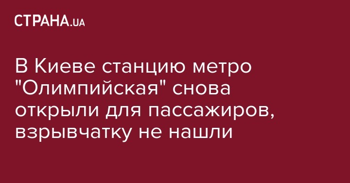 В Киеве станцию метро "Олимпийская" снова открыли для пассажиров, взрывчатку не нашли