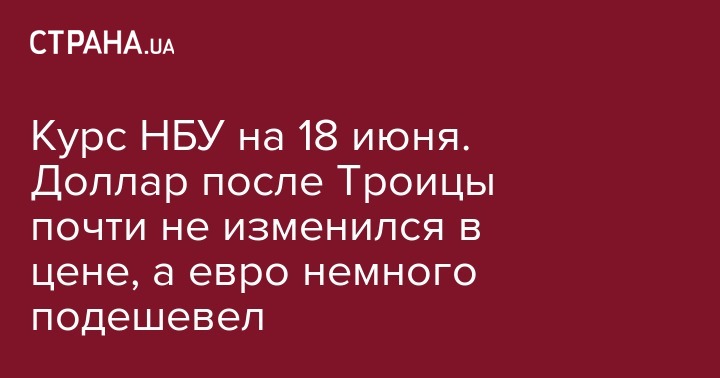 Курс НБУ на 18 июня выглядит так: