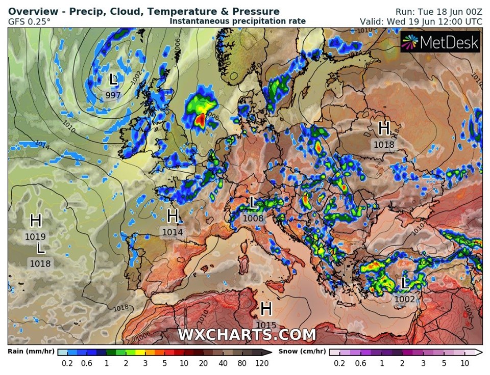 "Сейчас Украина находится в зоне влияния антициклона, когда тотальные существенные осадки маловероятны. Однако именно летом синоптики прогнозируют так называемые внутримассовые осадки. Когда воздух разогревается сильно, происходит неоднородное интенсивное испарение, влага наверху не задерживается и проливается локальными, но порой мощными ливнями. Да еще и градом и грозой. Вот это и называется "местами"", - пояснила Наталья Диденко.