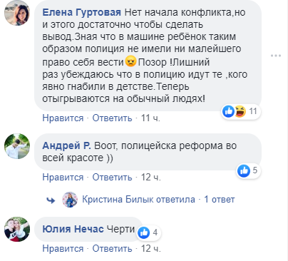 "Инцидент произошел в центре Киева около Бессарабской площади. Вот прислали мне в личку пострадавшие. Сюжет таков: пробка, Бессарабка, патрульные остановили какую-то машину и начали разговаривать с водителем на повышенных тонах. Сзади ехала семья - муж, жена и ребенок. После того, как жена решила снять на видео конфликтную ситуацию, патрульные переключили свое внимание на нее, забыв об остановленном ими ранее авто. Все закончилось задержанием женщины, ее мужа и оставленным на 5 часов в машине ребенком.