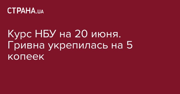 Курс НБУ на 20 июня. Гривна укрепилась на 5 копеек
