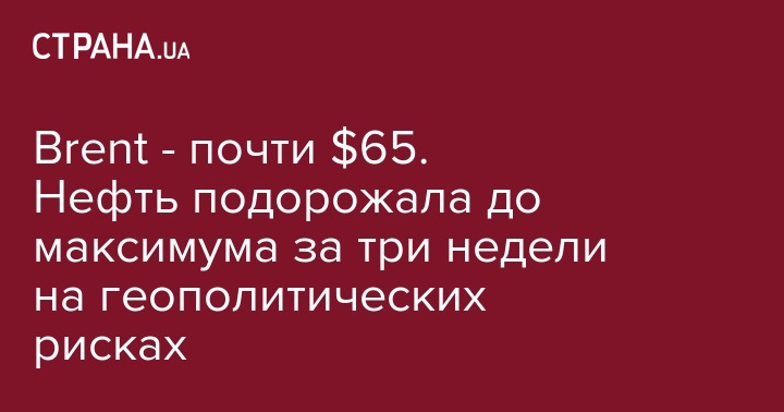 Августовские фьючерсы на Brent на лондонской бирже ICE Futures к 18:00 мск подорожали на $2,87 (4,64%) - до $64,69 за баррель. Это рекордное значение с 31 мая.
