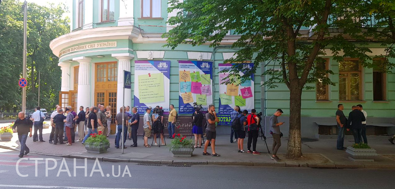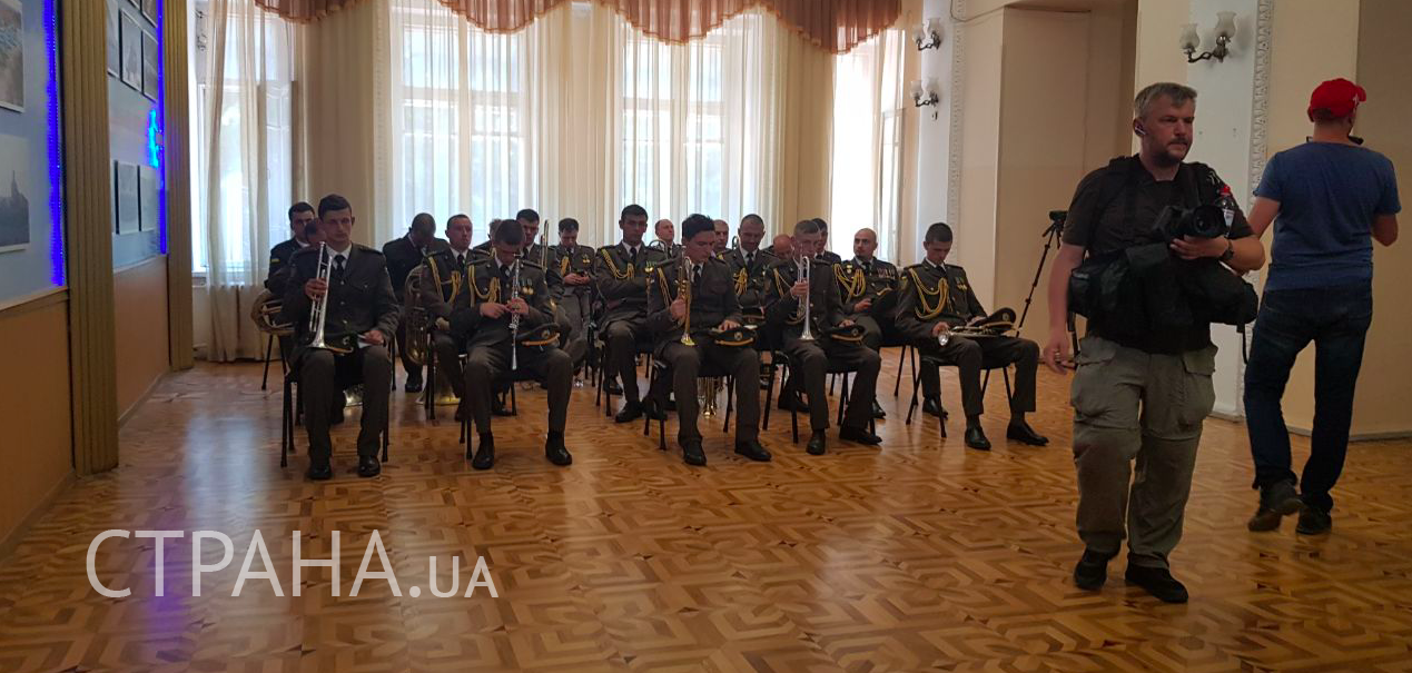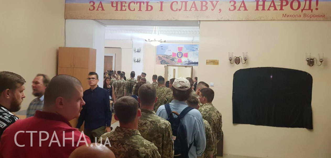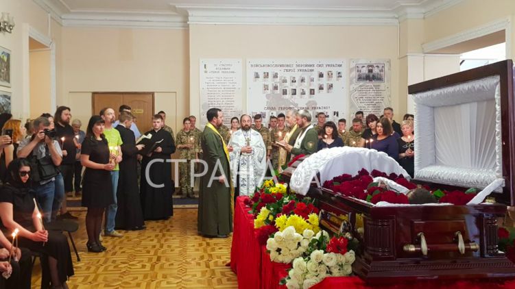 В холле здания состоялось отпевание, к гробу выстроилась колонна военных с цветами. Об этом сообщает корреспондент "Страны".