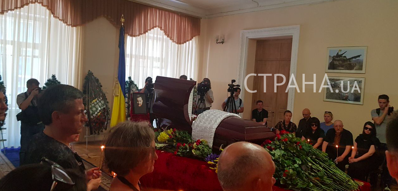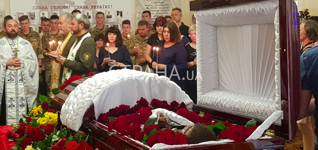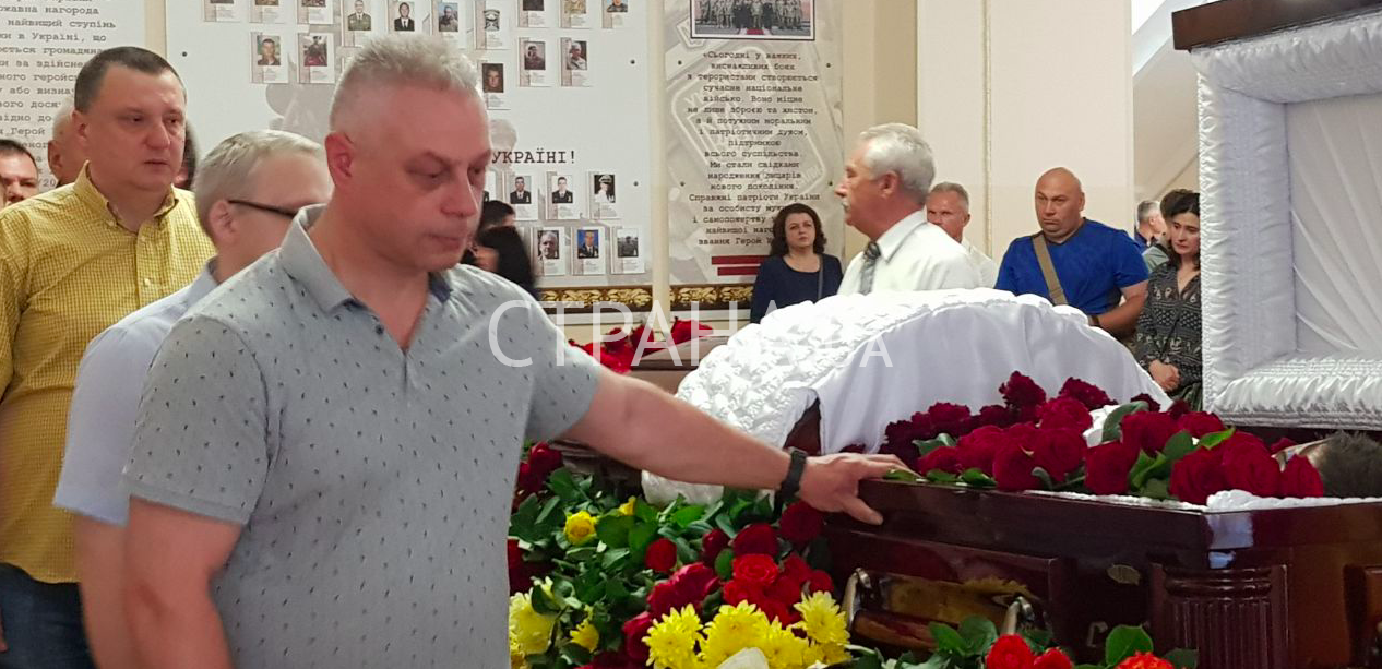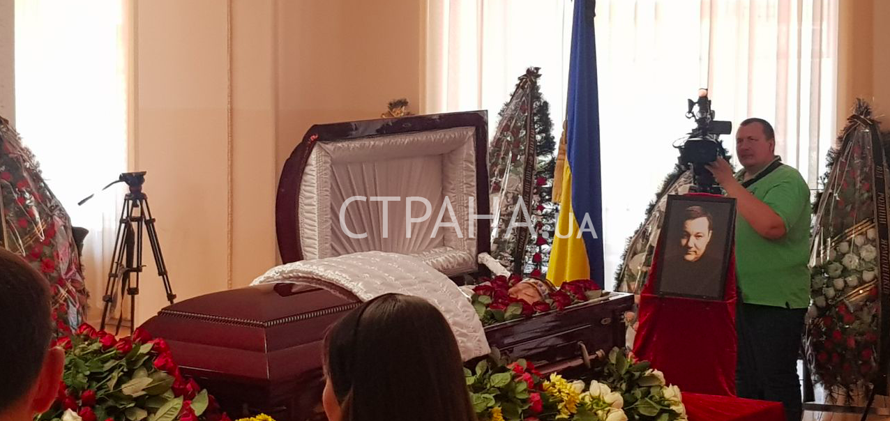 Тымчук лежал в открытом гробу. На голове - венчик. Он полагается на лоб умершего после омовения тела. Отметим, что по православным канонам самоубийц не отпевают (самоубийство - одна версий его гибели, - прим.).