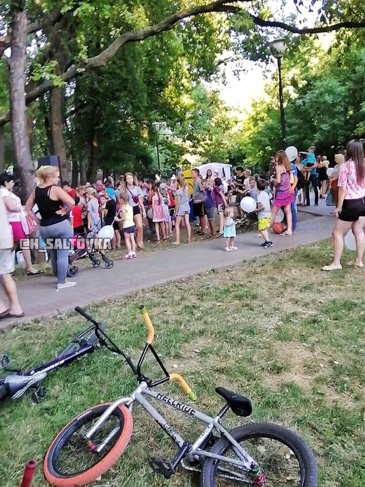 Пока полиция изымала коробки с лекарствами на Северной Салтовке, в этом же районе установили палатки "Фонда Грановского". Детям раздавали бесплатную сладкую вату, воздушные шары и приглашали на батут.