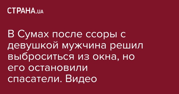 В Сумах после ссоры с девушкой мужчина решил выброситься из окна, но его остановили спасатели. Видео