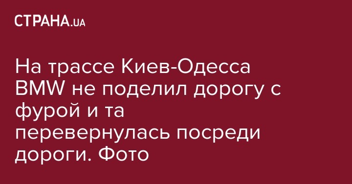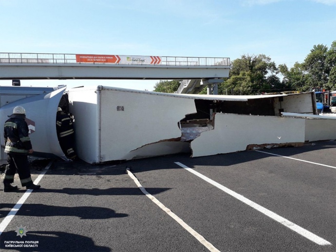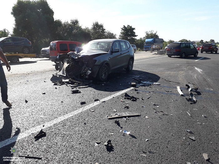 На трассе Киев-Одесса иномарка BMW X3 врезалась в грузовик Renault Magnum 480, в результате чего фура перевернулась и заблокировала движение. К счастью, авария обошлась без жертв. Об этом 26 июня сообщает патрульная полиция Киевской области.