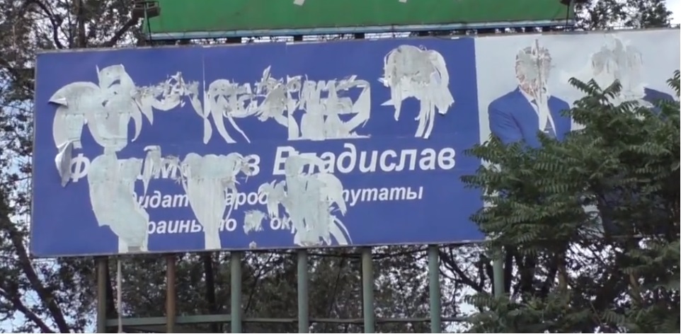 В Мариуполе коммунальщики по ночам срывают борды кандидата в нардепы Филимонова. Фото