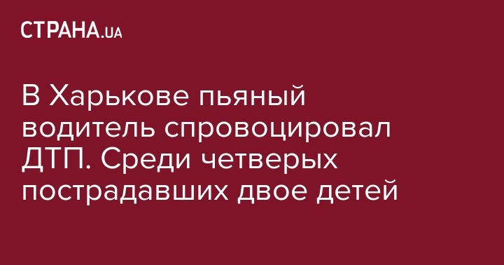 В ночь на 30 июня в Харькове пьяный водитель устроил ДТП. В результате пострадали четыре человека, в том числе двое детей. Об этом сообщает Отдел коммуникации полиции Харьковской области.