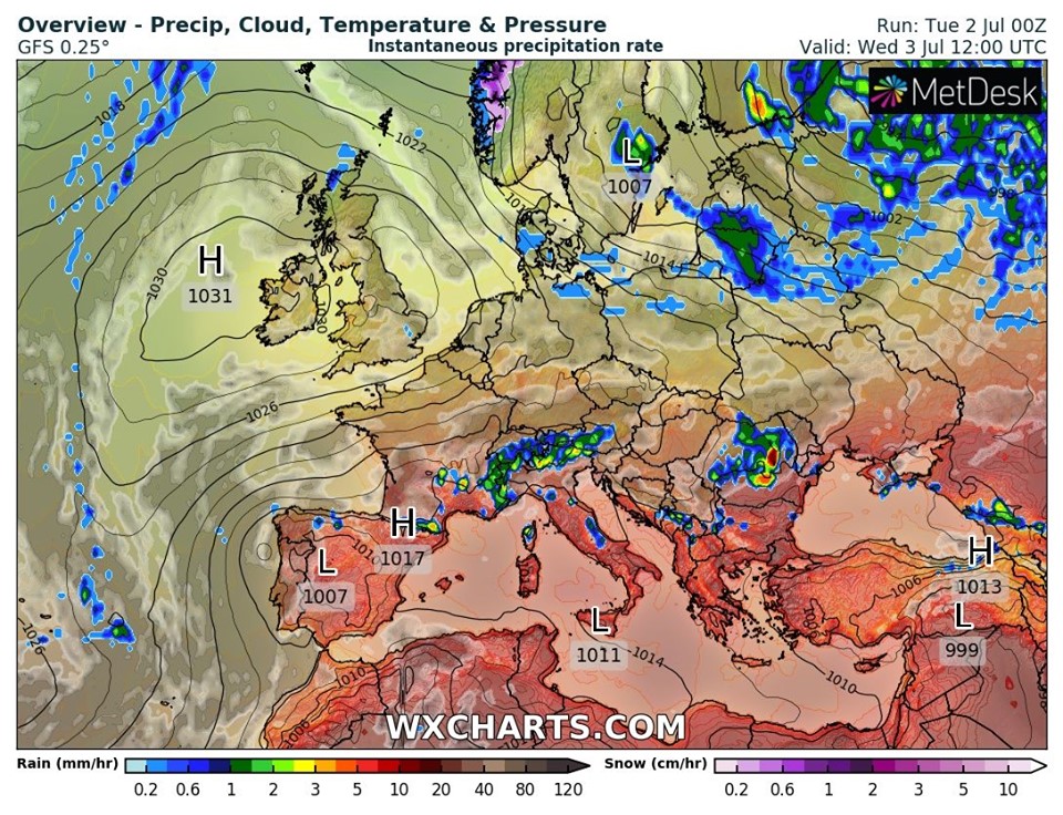 Напомним, 2 июля по всей стране пройдут грозовые дожди, а в Одессе жара достигнет +38 градусов.
