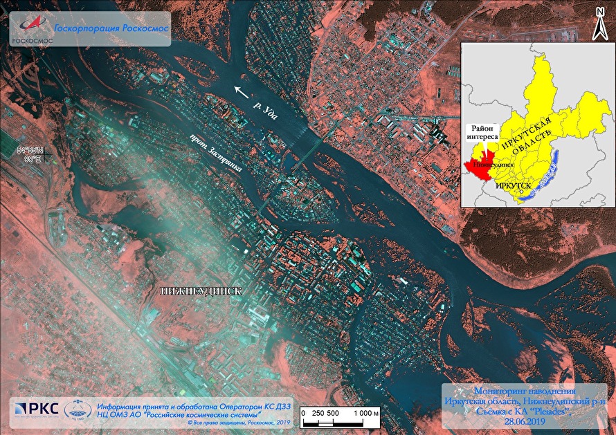 Сообщается, что съемки пострадавшего региона, где введен режим ЧС, проводятся несколько раз в сутки. "По состоянию на 1 июля получены и переданы данные ДЗЗ общей площадью более 1,5 млн квадратных километров", - указывают в Роскосмосе.