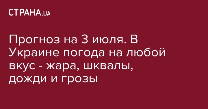 Прогноз на 3 июля. В Украине погода на любой вкус - жара, шквалы, дожди и грозы