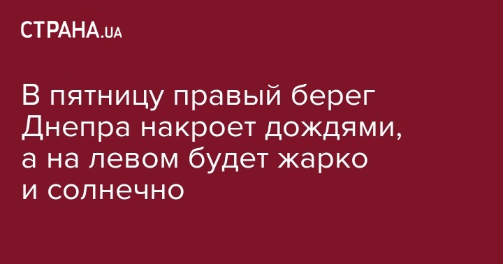 В пятницу правый берег Днепра накроет дождями, а на левом будет жарко и солнечно
