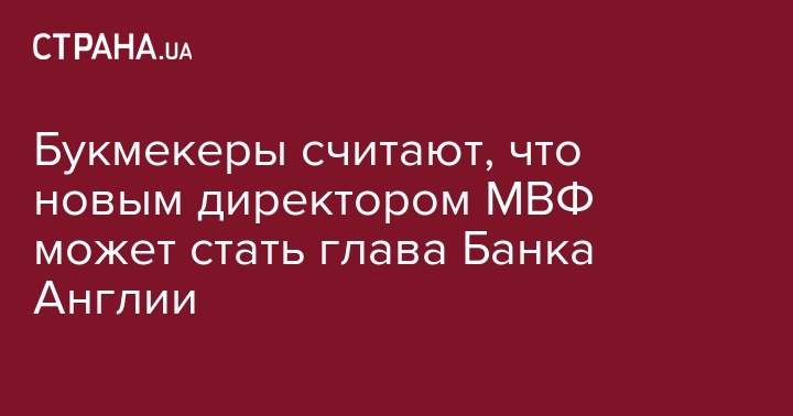 Председателя Банка Англии Марка Карни букмекеры считают главным претендентом на пост директора-распорядителя МВФ. Предыдущая глава МВФ Кристин Лагард выдвинулась на пост главы Центробанка Евросоюза (ЕЦБ).
