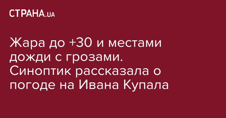 Жара до +30 и местами дожди с грозами. Синоптик рассказала о погоде на Ивана Купала