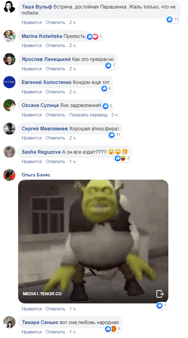 Посетители страницы нардепа не высказали ни капли сочувствия к Порошенко. Комментаторы отреагировали фразами вроде: "Встреча, достойная Порошенка. Жаль только, что не побили" и "Хорошая атмосфера".