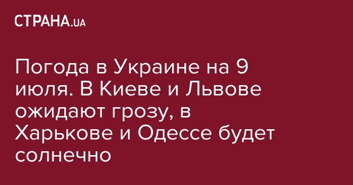 Во вторник, 9 июля, в Украине по-прежнему сохранится летняя прохлада, но половину территории страны накроют дожди. Об этом свидетельствует прогноз, размещенный на сайте Укргидрометцентра.