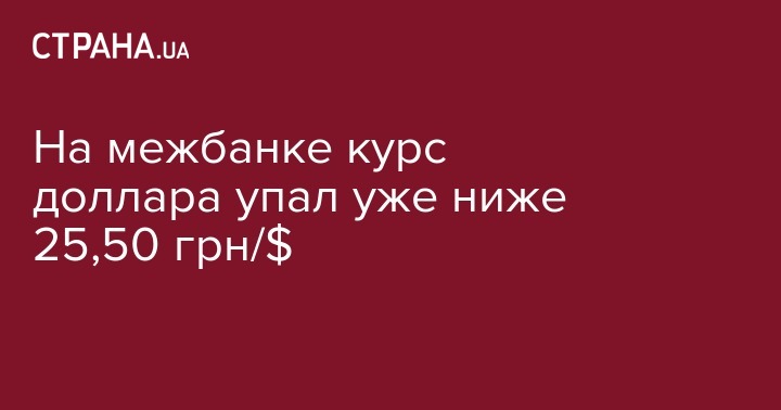 На межбанке курс доллара упал уже ниже 25,50 грн/$