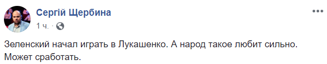 "Зеленский начал играть в Лукашенко. А народ такое любит сильно. Может сработать", - считает Сергей Щербина.