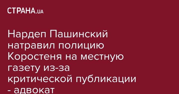 Скандальный народный депутат Сергей Пашинский, который идет в Раду по округу №64 в Коростене Житомирской области, подал заявление в городскую полицию Коростень на газету "Патриот" из-за критической публикации. В полиции открыли дело против редакции и вызвали всех журналистов на допрос. Об этом адвокат Андрей Гожый сообщил в Facebook.