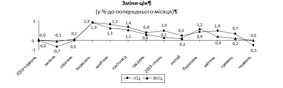 По данным Государственной службы статистики, индекс инфляции (или индекс потребительских цен) в июне 2019 года по отношению к маю составил 99,5 %. А за период январь - июнь 2019 года - 103,6 %.