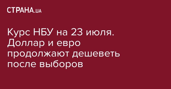 Курс НБУ на 23 июля. Доллар и евро продолжают дешеветь после выборов