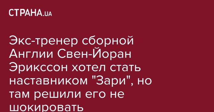 Экс-тренер сборной Англии Свен-Йоран Эрикссон хотел стать наставником "Зари", но там решили его не шокировать
