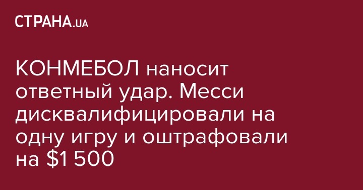 Южноамериканскоая конфедерация футбола (КОНМЕБОЛ) не простила Лионелю Месси критику в свой адрес на последнем Кубке Америки и приняла против него персональные санкции.