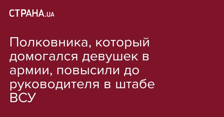 Полковника, который домогался девушек в армии, повысили до руководителя в штабе ВСУ