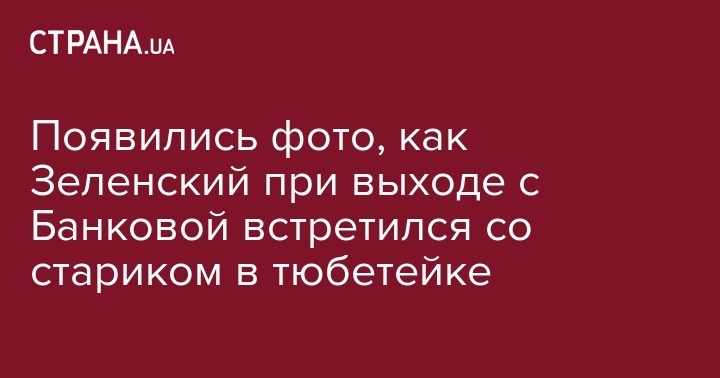 Появились фото, как Зеленский при выходе с Банковой встретился со стариком в тюбетейке