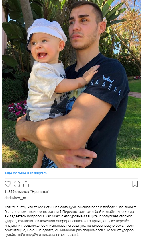 На странице боксера в Instagram появился пост, в котором сообщается о том, что по ходу боя Дадашев перенес инсульт.