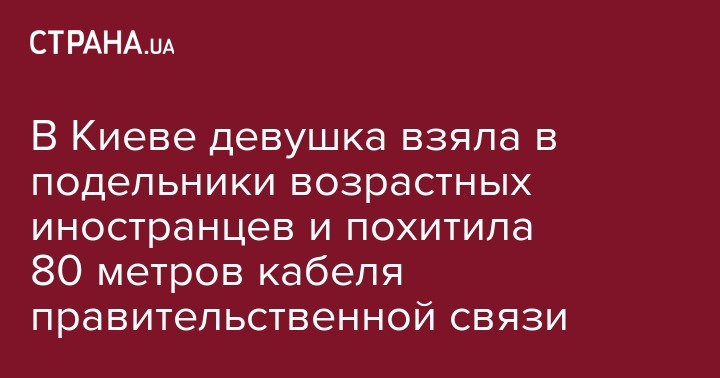 В Киеве девушка взяла в подельники возрастных иностранцев и похитила 80 метров кабеля правительственной связи