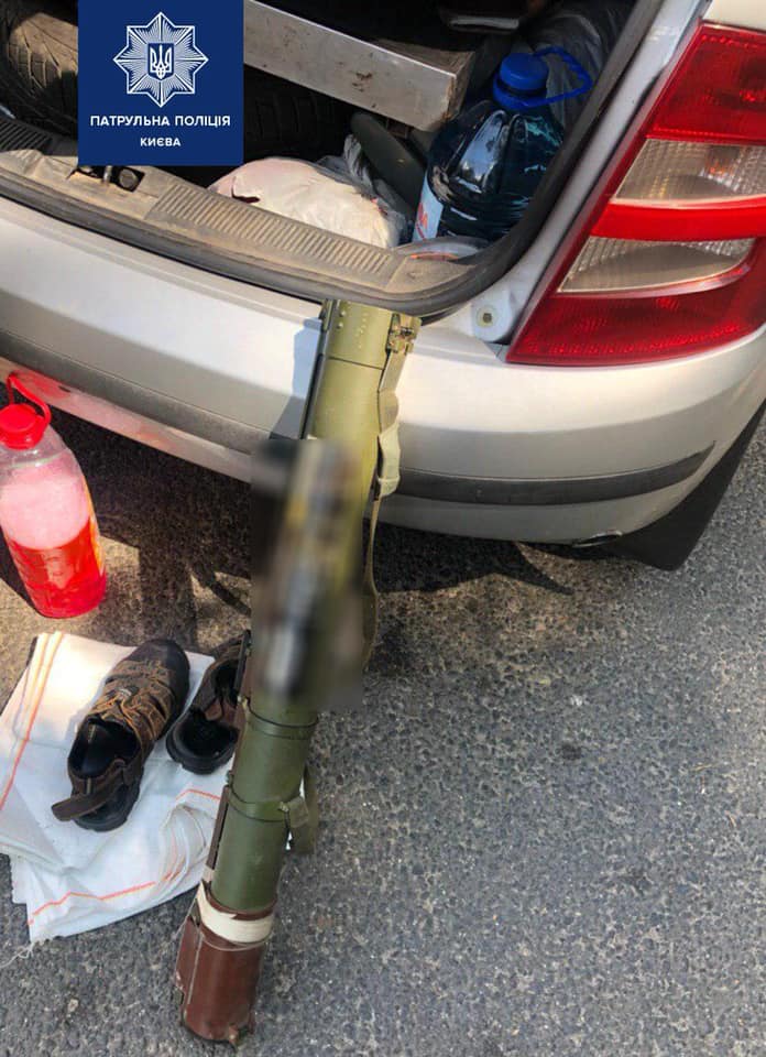 На въезде в Киев патрульные случайно нашли в авто противотанковый гранатомет. Фото