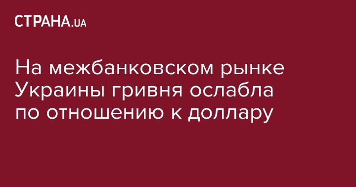 Курс гривни на межбанковском валютном рынке в четверг снизился до 25,39 грн/$1 с 25,115 грн/$1, которые были вчера.