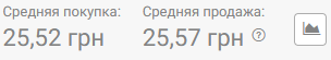 В 18:00 средняя покупка в обменках была на уровне 25,52 грн, средняя продажа - 25,57 грн.