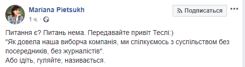 "Как доказала наша избирательная кампания, мы общаемся с обществом без посредников, без журналистов".