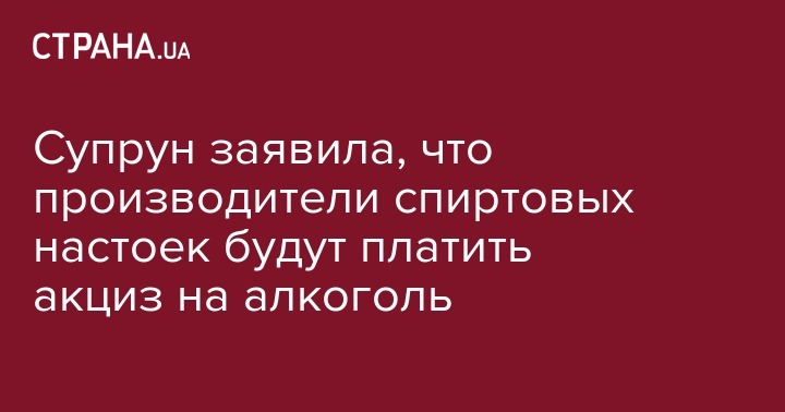 "Производители спиртосодержащих настоек будут покупать спирт и платить акциз, как это делают, например, производители алкогольных напитков", - анонсировала Супрун. Проект этого постановления уже готов и вскоре его могут принять.