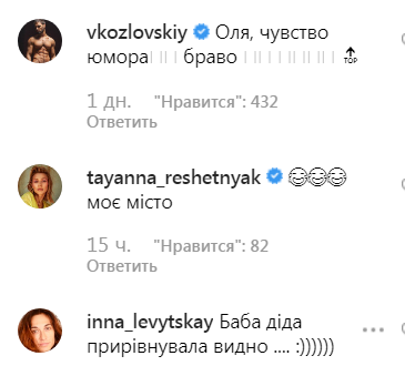 Под постом оставили комментарии несколько знаменитостей. Филипп Киркоров и Виталий Козловский похвалили коллегу за самоиронию.