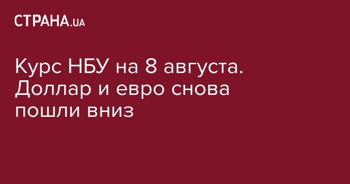 Курс НБУ на 8 августа. Доллар и евро снова пошли вниз