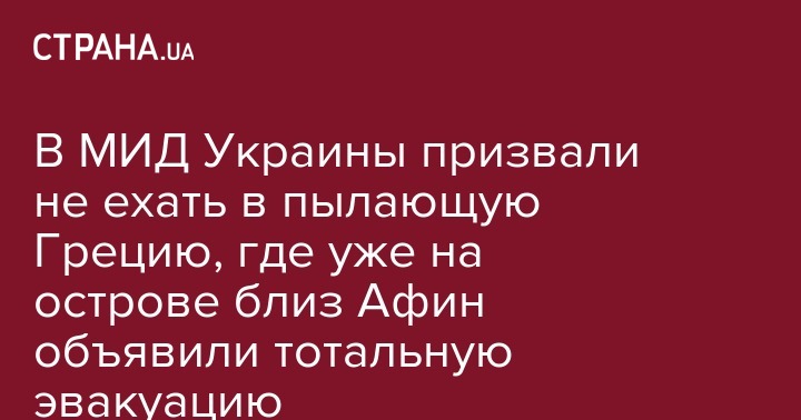 В МИД Украины рекомендовали украинцам в Греции ограничить передвижение по районам, где объявлены высокие уровни пожарной опасности. Предупреждение опубликовано пресс-службой фб-странице Департамента консульской службы МИДа утром во вторник, 13 августа.