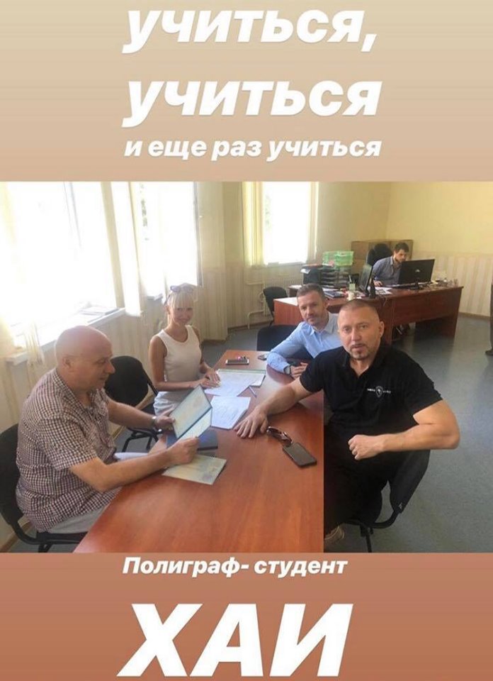 Так, Серега выложил в своем Instaram сториз с текстом: "Учиться, учиться и еще раз учиться. Полиграф - студент ХАИ".