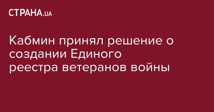 Кабинет министров Украины на заседании 14 августа принял решение о создании Единого государственного реестра ветеранов войны. Об этом сообщает 112.ua.