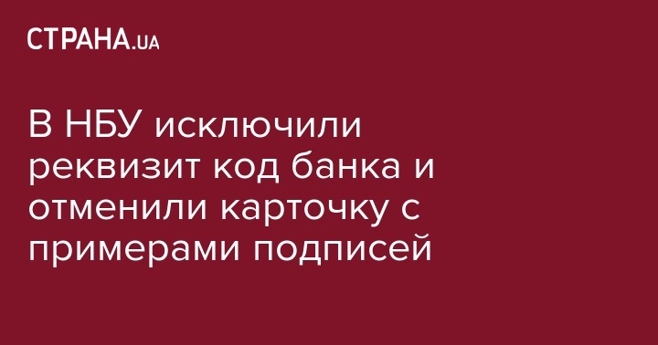 "Исключен из кассовых документов реквизит "код банка", отменена "карточка с примерами подписей" клиентов при обслуживании банком их счетов", - говорится в сообщении НБУ.