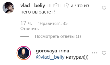 Этот же подписчик спросил, что вырастет из мальчика. На что Горовая с иронией парировала: "Натурал".