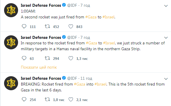 Об этом сообщается в официальном Twitter IDF.
