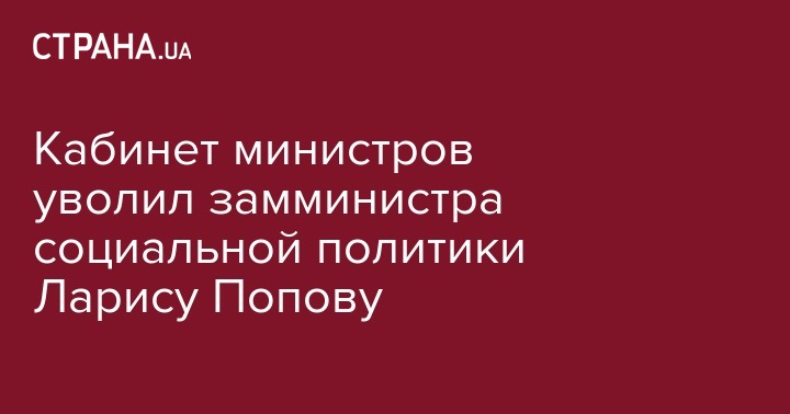 В среду, 21 августа, Кабинет Министров Украины уволил с должности заместителя министра социальной политики Ларису Попову. Об этом свидетельствует информация на сайте правительства.