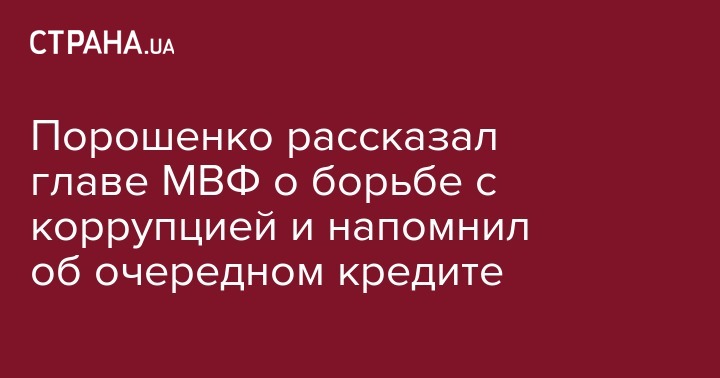 Президент Украины также рассказал главе МВФ о ходе реформ и борьбе с коррупцией.