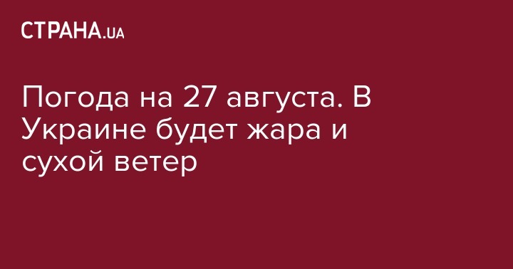 Погода на 27 августа. В Украине будет жара и сухой ветер